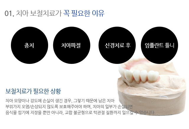 치아 모양이나 강도에 손실이 생긴 경우, 그렇기 때문에 남은 치아 부위가지 오염/손상되지 않도록 보호해주어야 하며,